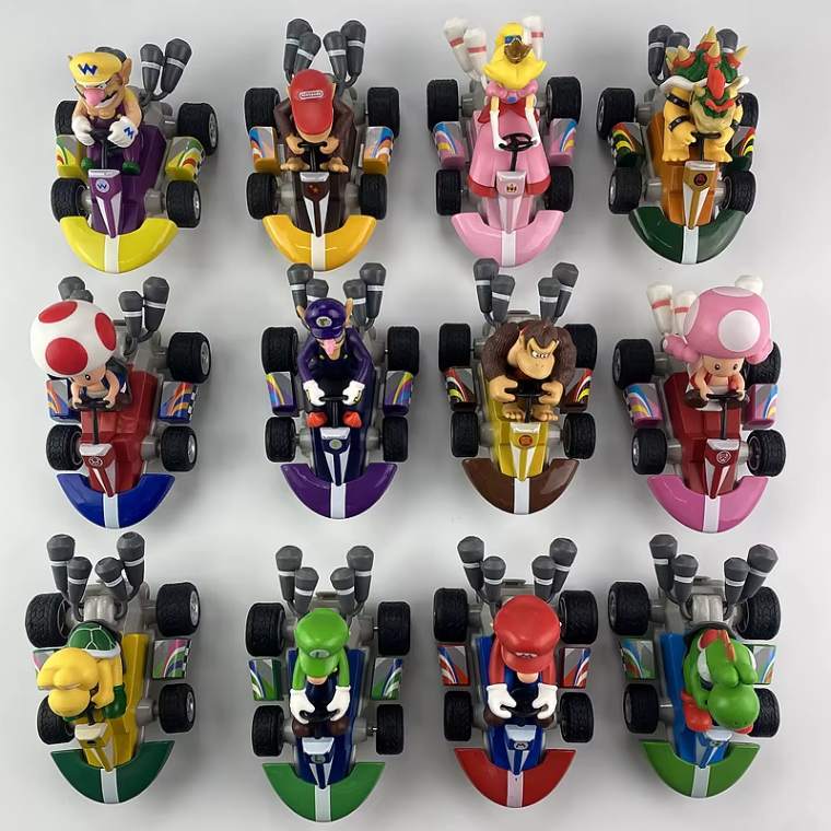 Reviva a adrenalina das corridas mais icônicas do universo Nintendo com esta coleção exclusiva de bonecos colecionáveis Mario Kart. Cada personagem vem em seu kart característico, com acabamento detalhado e pintura vibrante para sua coleção.